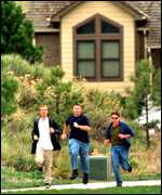Students gather following the Columbine High School massacre, part of the photography for which the Denver Rocky Mountain News won the 2000 Breaking News Photography Pulitzer